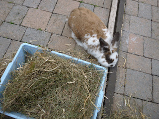 Harry came into Bunny Camp this week along with his piggies friends, he is due to be with us for a number of weeks and we are looking forward to getting to know him better. Here he is being carried back to his hutch after some time out on our patio area. He has settled in very well and quite a cutie.